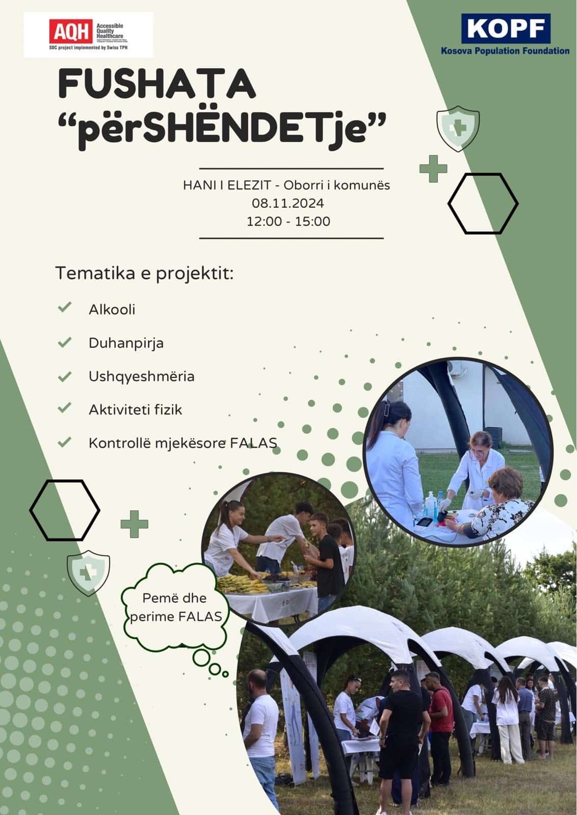 Komuna Hani i Elezit, respektivisht Drejtoria për Shëndetësi dhe Mirèqenie Sociale bashkë me AQH me financimin e Agjencisë Zvicerane për Zhvillim dhe Bashkëpunim (SDC) të implementuar nga KOPF organizon në Hanin e Elezit – KARVANIN SHËNDETËSOR të quajtur “PërSHËNDETje”.