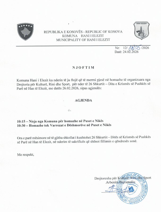 Njoftimet për Nënshkrim të Kontratës