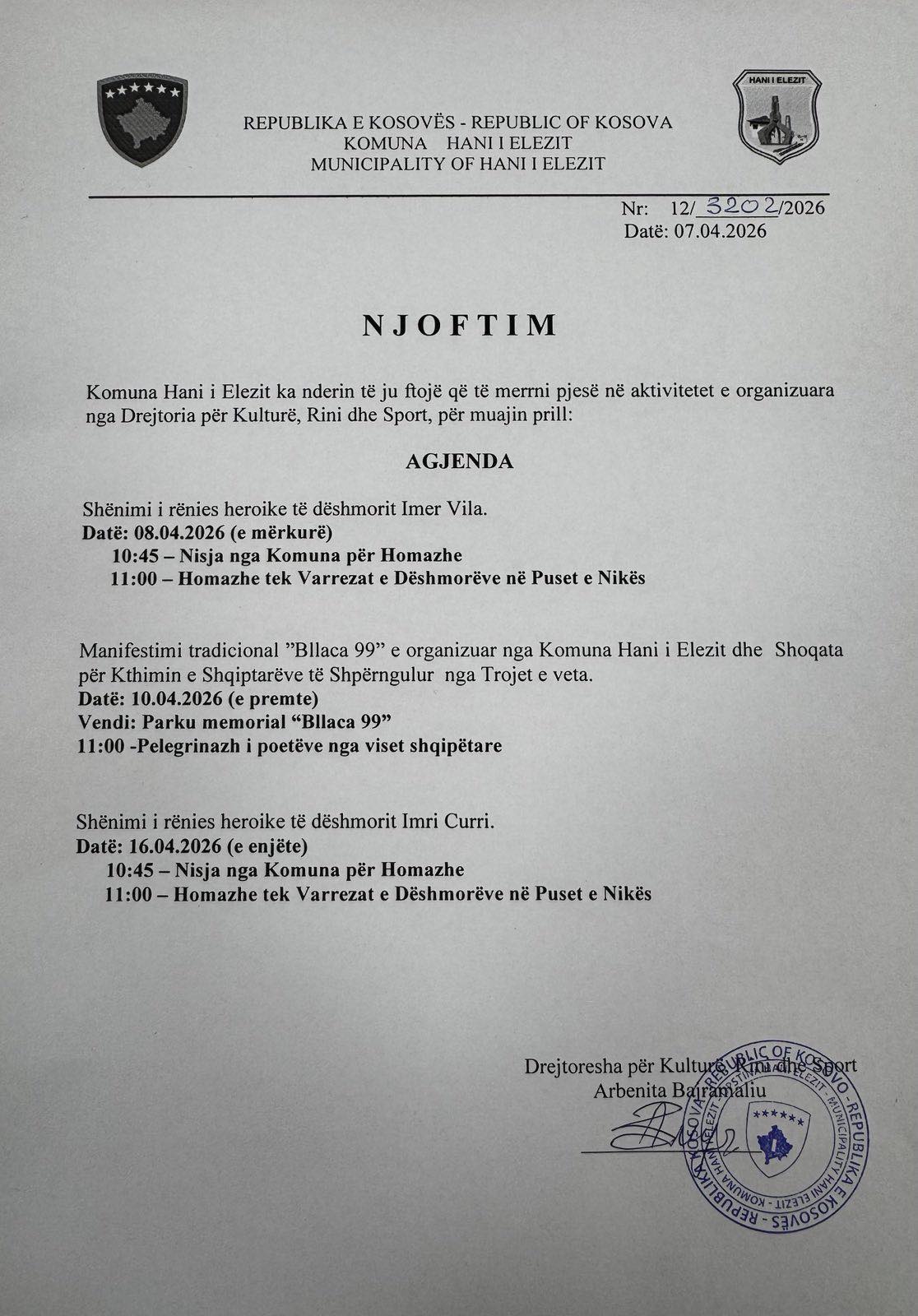 DREJTORESHË PËR KULTURË, RINI DHE SPORT
